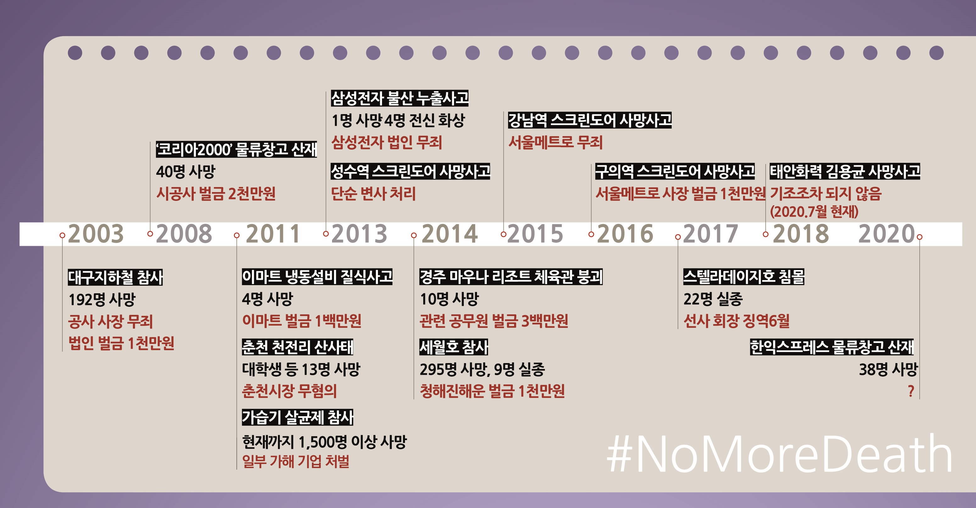2003년 대구지하철 참사로 192명이 사망한 이래 2018년 태안화력발전소에서 노동자 김용균이 사망하기까지 숱한 산업재해가 발생했습니다. 우리 사회는 중대재해기업처벌법 제정을 위해 오랜 시간 투쟁했고 그 끝에 결국 이 법이 국회를 통과할 수 있었습니다. 하지만 이것으로 끝난 걸까요?