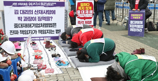 중대재해기업처벌법은 2020년 전태일 열사 사망 50주기를 맞아 다수의 노동 관련 단체가 요구한 법안 중 하나였죠. 또한 2018년 충남 태안 화력발전소에서 일하다 숨진 비정규직 김용균 씨의 어머니인 김미숙 김용균재단 이사장이 2020년 9월 국회에 청원을 올려 10만 명 이상의 동의를 받았기 때문에 국회에서 통과되리라고 여긴 법이었습니다.