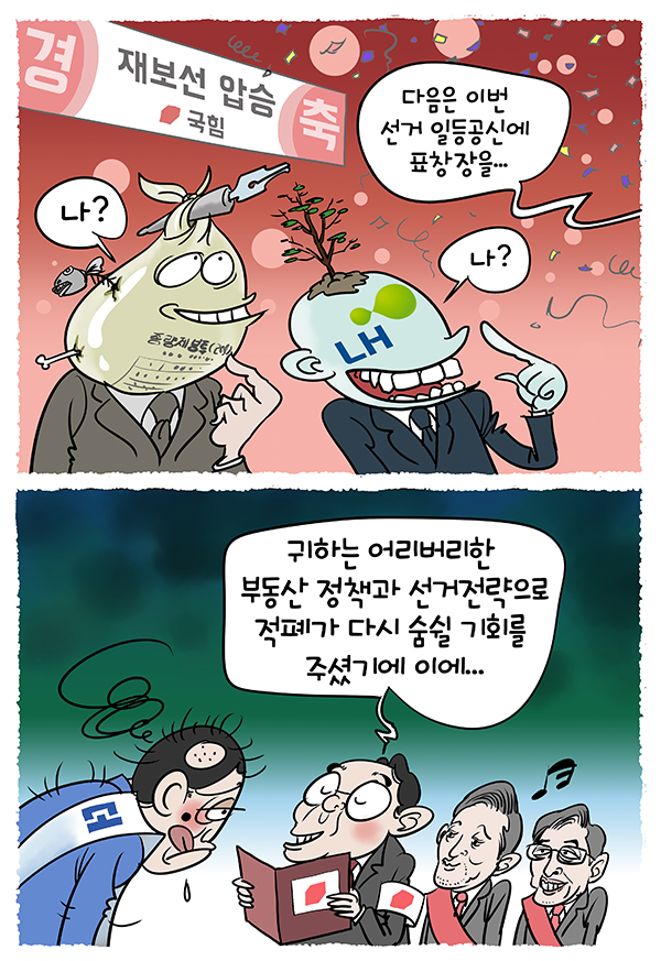 그러나 결과적으로 국민의힘이 뭘 잘해서 승리한 선거는 아니었습니다. 용산참사에 대해 철거민을 탓하고 내곡동 땅 특혜 의혹에 엘시티 특혜분양 비리 등등 민주당보다 더한 비리로 점철되어 있었으니까요. 그럼에도 불구하고 시민들은 국민의힘 후보에게 표를 주었습니다. 지난 총선에서 180석 거대 여당을 만들어준 시민의 뜻을 제대로 안고 가지 못하고, 이전 정권의 실정을 개혁하겠다던 이들의 '내로남불'에 대한 배신감이 작용한 선거였습니다.