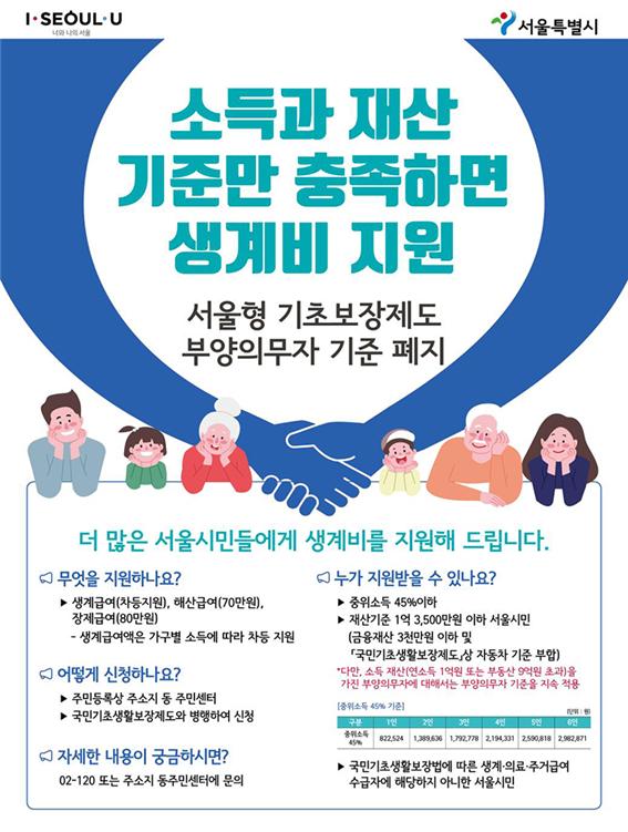 이제는 부양가족 유무에 상관없이 생계가 어려운 당사자에게 초점을 맞춰 복지를 제공하는 방향으로 변화되었습니다. 서울에서는 이런 곤경에 처했던 2300명 정도가 5월부터 추가 지원을 받을 수 있게 될 전망입니다. 물론 종전과 같이 세전 연소득이 1억 또는 부동산 9억을 초과하는 고소득, 고재산 부양의무자가 있는 경우는 예외입니다.