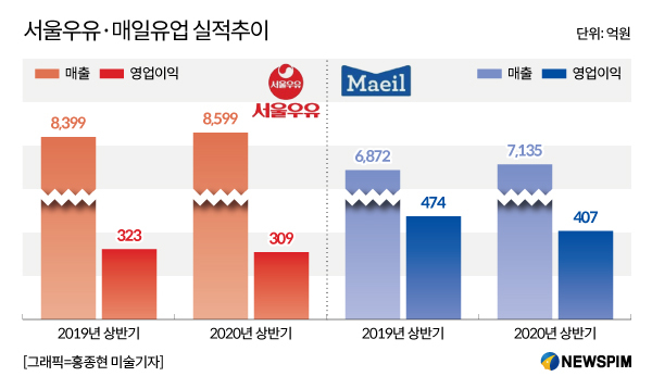 지난해 코로나19로 등교 수업 대신 비대면 온라인 수업이 일상이 되는 풍경이 연출되었고, 이로 인해 학교 우유급식이 중단되면서 우유업계에 큰 타격이 발생했습니다. 통상 우유급식 시장 성수기가 3월인데 지난해는 코로나19가 기승을 부린 터라 그야말로 직격탄을 맞은 것이죠. 2020년 상반기 유업계의 성적표를 보면 서울우유가 매출은 1위를 유지했지만, 상대적으로 매일유업의 선방이 눈에 띕니다. 서울우유와 달리 급식사업 비중이 덜한 편이어서 하반기 경쟁력이 더 커질 것이란 분석도 있었죠.