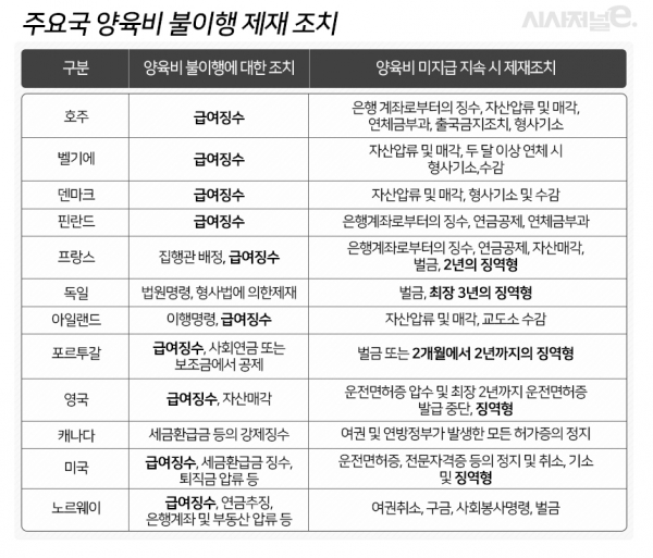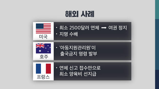 전 금메달리스트까지 세간의 입에 오르내리자 정부도 양육비 미지급 문제의 심각성을 인지했는지, 양육비 미지급자에 대해 운전면허 정지나 출국을 금지할 수 있는 양육비 이행법 개정안이 나온 바 있습니다. 하지만 이 또한 소송이 필요합니다. 이런 절차를 밟기 위한 시간과 비용을 댈 수 있는 부모들이 얼마나 될까요? 양육비 지급에 대한 사회적인 인식과 법과 제도 모두가 뒷받침되어야 할 때입니다. 어떻게 바뀌어야 하는지 다른 나라의 예를 살펴보면 실마리를 찾을 수 있지 않을까요?