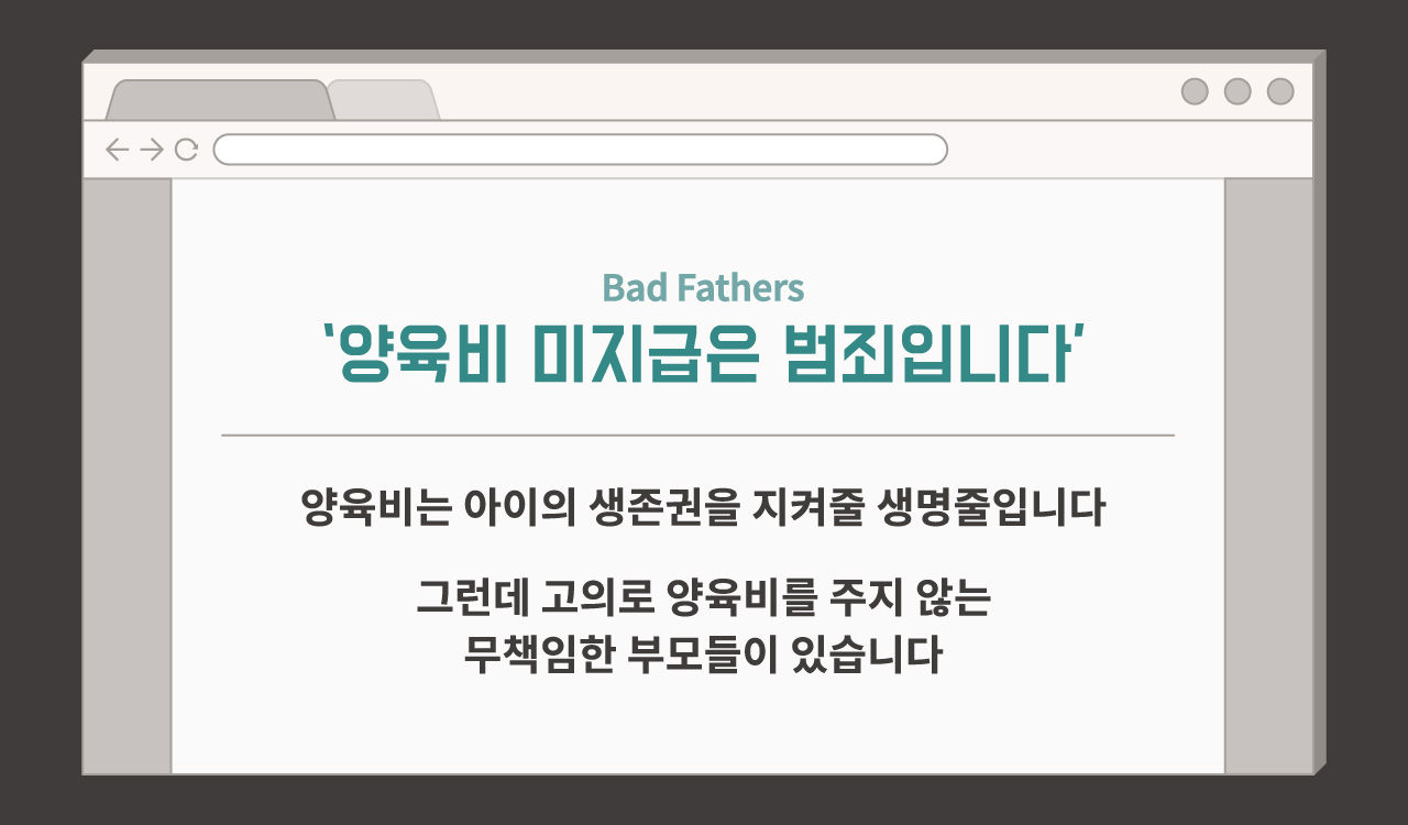 쇼트트랙 국가대표 선수로 금메달을 따기도 했던 김동성 씨가 작년 10월 두 자녀의 양육비를 지급하지 않은 탓에 배드파더스 사이트에 신상이 다시 등재됐습니다. 배드파더스는 이혼 후 자녀를 키우는 양육자에게 양육비를 주지 않는 나쁜 부모의 얼굴과 신상을 공개하는 온라인 사이트인데요, 김동성은 그보다 반년 전인 작년 4월 처음으로 배드파더스에 등재가 된 적이 있었습니다. 법적으로 지급할 의무가 있는 양육비 1500만 원은 외면하고 자기 애인에게 명품 코트를 선물했기 때문입니다. 양육비는 자신이 낳은 아이들의 생존과 직결된 부분인데도 말이죠.