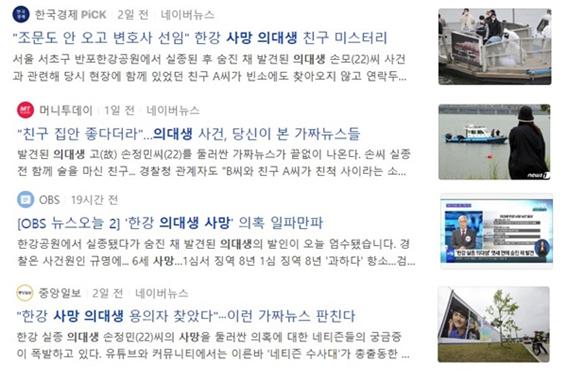 선호 씨 같은 청년 노동자의 안타까운 죽음을 대하는 언론의 태도도 문제입니다. 비슷한 시기에 또 한 청년의 죽음이 있었습니다. 우리 사회를 뒤흔든 한강 의대생 실종 및 사망 사건입니다. 똑같은 청년의 죽음이지만 언론의 접근과 보도 방식은 확연히 달랐습니다. 한강 의대생 사건은 사건 초기에 미스터리물을 다루듯 선정적 기사를 양산하더니 급기야 장례식장의 추모사까지 생중계하기에 이르렀습니다. 이에 그치지 않고 숱한 기자들의 선정적인 추리 극장은 현재 진행형입니다. 그에 반해 평택항 선호 씨의 사망 사건은 거의 묻히다시피 했다가 SNS와 커뮤니티 등에서 문제를 제기한 끝에 뒤늦게 언론 보도를 타기 시작했죠. 하지만 두 사건의 기사량은 비교할 수 없을 정도로 큰 차이를 보입니다.