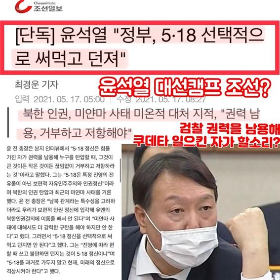 아울러 올해는 진영을 가리지 않고 5.18 정신을 헌법 전문에 담자는 말도 나왔습니다. 문재인 대통령의 대선 공약이기도 했던 내용인데요, 이번에는 조국 전 법무부장관은 물론 윤석열 전 검찰총장도 같은 뜻을 밝혔습니다. 그런데 윤석열 전 총장이 5.18 정신을 얘기하자 바로 비난 여론에 직면했습니다. 임은정 대검찰청 감찰정책연구관은 5.18 때 항명은커녕 사표라도 던져본 검사가 있었느냐며 윤석열 전 검찰총장을 돌려서 비판하는 한편 검찰 조직이 한심하고 개탄스럽다고 했습니다. 게다가 윤석열의 검찰은 수십 년간 5.18 광주민주화항쟁을 왜곡하고 폄훼했던 지만원을 무혐의 처분한 적이 있습니다. 상황이 이렇다 보니 이제 와서 5.18 정신에 숟가락을 올리려는 건 염치없는 행동이라는 비판이 제기되었습니다.