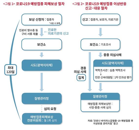 백신 부작용으로 피해 보상을 받고 싶다면 별도의 절차가 필요합니다. 일단 접종자 본인은 물론 접종한 의사가 이상반응이 의심된다는 신고를 꼭 해야 합니다. 여기에 진료비 영수증과 질병관리청이 요구하는 서류를 보건소에 제출해야 합니다. 해당 서류는 코로나19 백신 및 예방접종(https://ncv.kdca.go.kr) 사이트에서 확인할 수 있습니다.