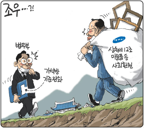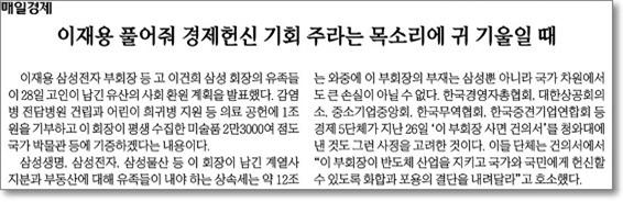 하지만 언론은 삼성의 미술품 기부 이면에 있는 차명재산 불법활용이란 배경을 지우고선 "이건희의 마지막 선물", "기부의 역사를 새로 쓰다", "삼성 일가 상속세 잡스의 3배", "기부 작품 한 달에 100점씩만 전시해도 20년 걸려" 등등 이재용비어천가를 부르기 바빴습니다. 마치 삼성이 안 내도 되는 돈을 국가와 시민들을 위해 환원하기라도 하는 양 말입니다. 그런데 언론의 삼성가 핥기는 여기서 끝이 아닙니다. 이런 선의를 베푼 이재용을 사면해줘야 인지상정 아니냐며 여론을 호도하는 기사를 양산한 겁니다. 언론은 반도체 대전이 격화하고 있다며 이재용 사면을 부채질했습니다. 하지만 이재용이 없다고 삼성이 반도체 전쟁에 대한 적절한 결정을 못 내린다면 그건 삼성의 경영구조가 그만큼 후진적이라는 증거밖에 안 되는 겁니다. 특정경제범죄법상 유죄 판결을 받은 자는 취업 제한에 걸립니다. 그러니 이재용이 삼성 부회장직을 유지하고 있는 것도 특경가법 위반인 상태입니다. 삼성 경영에서 법적으로나 도의적으로나 빠져야 맞는 상황이죠.