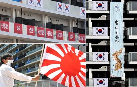 도쿄올림픽의 문제는 여기서 끝이 아닙니다. 졸렬한 일본은 혐한 극우단체를 통해 우리나라 선수단이 선수촌에 걸어놓은 이순신 장군의 글귀를 정치적이라는 이유를 들먹이며 끌어내렸습니다. IOC 측은 현수막에 인용된 문구가 전투에 참여하는 장군을 연상시킬 수 있으므로 올림픽 헌장 50조 위반이라고 입장을 밝혔습니다. 정치, 종교, 인종적 선동을 허용하지 않겠다는 조항에 근거한 것이죠. 대한체육회는 이순신 현수막을 철거하면서 욱일기에도 똑같은 잣대를 적용하겠다는 IOC의 약속을 받아냈습니다. 하지만 일본은 욱일기에 정치적 주장이 담겨 있지 않다며 경기장 반입 금지 물품에 해당하지 않는다는 여론전에 나섰습니다. IOC의 묵인과 일본의 뻔뻔함은 올림픽 기간 내내 문제가 될 것으로 보입니다. 전범기까지 등장하는 마당에 도쿄올림픽을 과연 평화와 화합의 제전이라고 부를 수 있을지 의문이 듭니다.