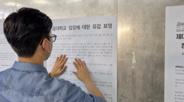 결국 문제의 심각성을 인식한 서울대생들이 교내 곳곳에 대자보를 붙여 구조적 문제 개선과 서울대 측의 공식적인 사과를 요구했습니다. 명백한 갑질과 열악한 노동환경에 의한 죽음이기에 그 책임을 서울대 본부와 기숙사가 져야 마땅하다는 입장이었습니다.