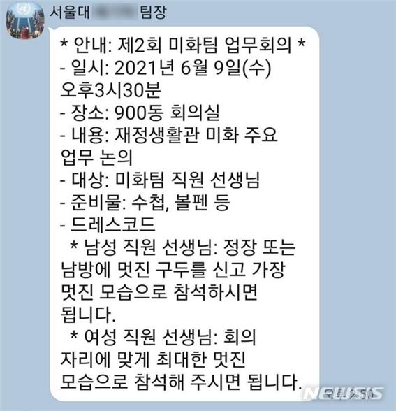미화 업무는 둘째 치고 청소노동자들의 근무 질서를 잡는답시고 군대식 업무 지시와 함께 청소노동자들이 회의에 펜이나 수첩을 안 가져오면 감점하겠다고 협박했습니다. 또 학교 시설물과 조직의 이름을 한문과 영어로 쓰게 하는 등 청소 노동과 하등 상관없는 시험을 보게 하고 점수가 낮은 노동자들에게 공개적으로 모욕감을 줬습니다. 청소노동자가 기숙사의 준공연도를 왜 알아야 할까요? 그런데 서울대의 갑질은 여기서 끝이 아니었습니다. 미화팀 업무회의에 참석하는 청소노동자들에게 정장과 구두로 드레스코드까지 지정하며 옥죄었죠.