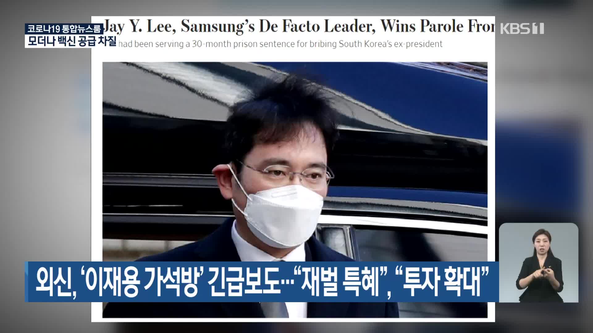 지난 9일(현지 시간) AP통신은 법무부가 이 부회장의 가석방을 허가한 법무부 가석방심사위원회의 결정을 승인했다는 소식을 긴급 뉴스로 전하며 "30개월 형기 중 1년을 남기고 나온 이번 발표는 중대 화이트칼라 범죄에 대한 관대한 역사와 유죄 판결을 받은 재벌에 대한 특혜를 보여준다"라고 평가했습니다. 영국 《가디언》은 "한국의 거대 기술 기업인 삼성전자의 주요 전략적 결정이 내려지지 않는 불안이 정치적, 대중적, 비즈니스적 지지를 키웠다"라고 설명했습니다.