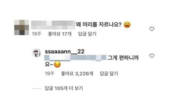 어떤 누리꾼이 왜 그렇게 머리를 자르냐고 물었는데요, 이에 대해 안산 선수가 그게 편해서라는 답을 달았습니다. 대수롭지 않은 문답이었죠. 그런데 갑자기 남초 커뮤니티에서 안산이 페미인 증거 찾기 놀이가 벌어졌습니다.