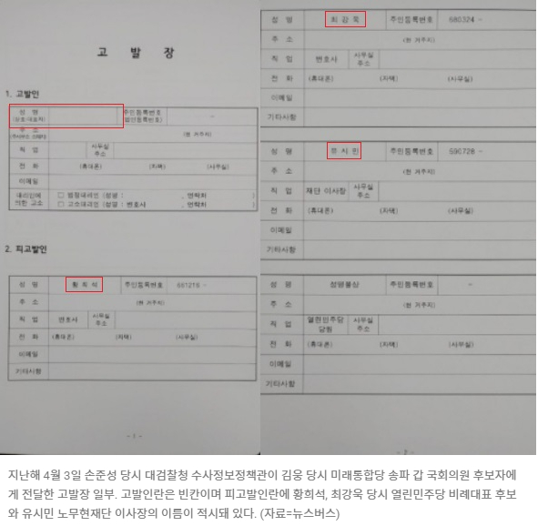 손준성 당시 대검찰청 수사정보정책관이 김웅 미래통합당 총선 후보에게 전달한 고발장에 적시한 혐의는 공직선거법 위반(방송·신문 등 부정이용죄)과 정보통신망법 위반(명예훼손) 혐의 등이었습니다. 김웅 후보는 고발장을 당시 미래통합당 법률지원단장이었던 정점식 의원에게 전달해 사용할 수 있게 했습니다. 등장하는 인물이 많고 관계가 상당히 복잡합니다만 간단히 정리하자면, 윤석열이 검찰총장의 지위와 힘을 이용해 눈에 거슬리는 여권 유력 인사들을 흔들 요량으로 자신과 온갖 비리의 온상인 부인 김건희 씨 그리고 측근인 한동훈 검사의 명예를 훼손했다는 혐의를 씌워 범야권 인사를 고발하도록 사주했다는 겁니다. 아울러 《뉴스타파》, 《뉴스버스》, MBC 등 윤석열의 검찰을 비판했던 기자들 또한 처벌하려고 했죠. 이번에 불거진 의혹이 사실이라면 윤석열과 검찰은 관련 고발장과 고발장에 첨부할 증거자료를 수집해 모두 미래통합당(국민의힘) 측에 넘기며 고발을 사주했고, 윤석열의 휘하에 있던 검찰은 국민의힘 측에서 시나리오대로 고발해주기만 하면 자신들이 원하는 대로 법적 조치를 하려고 준비하고 있었다는 기가 막힌 얘기가 됩니다. 4.15 총선을 불과 열흘밖에 앞에 두지 않은 4월 3일의 상황입니다. 당시는 검찰개혁을 둘러싸고 여권과 윤석열의 갈등이 격화하던 때죠. 이 때문에 이번 의혹에 대해 범여권은 검찰의 사유화이자 명백한 선거 개입 시도라고 규정하며 비판하고 있습니다.