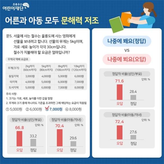 한층 더 심각한 문제는 한국인 중에 한국어를 제대로 이해하지 못하는 층이 늘어나기 시작했다는 점입니다. 세계적으로 문맹률이 낮은 상황이라 국민 대부분이 읽고 쓸 수는 있지만, 정작 자신이 읽은 정보가 어떤 의미인지 무슨 맥락인지 파악하지 못하는 경우가 많습니다. 문해력이 갈수록 떨어지고 있다는 의미입니다. 이건 단순히 국어 점수만의 문제가 아닙니다. 글을 읽고 논리와 맥락을 찾아 적절한 판단을 하는 한국어 구사 능력이 현저히 떨어지고 있습니다. 이렇게 되면 한국어로 된 문제를 이해하지 못하고 제대로 된 대처를 할 수 없습니다. 한국어 구사 능력이 떨어지면 수학이나 영어 능력도 덩달아 떨어지게 됩니다. 그리고 무엇보다 어떤 것이 가짜뉴스고 어떤 것이 옳은 정보인지 판단하는 능력이 떨어지는 것이 현재 현재 한국 아이들이 당면한 문제입니다.