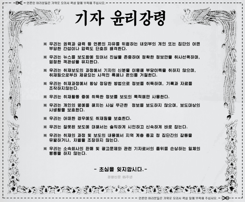 안타깝게도 이정미 기자는 자신이 해석한 '무운(無運)'이 맞다고 우기며 무운이라는 말을 중의적으로 쓸 수 있는 말인 양 호도했습니다. 그러면서 이준석 대표에게 어떤 의미로 말한 것인지 확인하겠다고 합니다. 이 정도 상황에 이르면 기자정신을 거론하지 않을 수 없군요. 헛소리를 하는 건 기자인데 왜 부끄러움은 시청자의 몫일까요? 자신이 틀릴 리 없다는 오만함, 잘못을 지적해줘도 고치려 하지 않는 뻔뻔함, 잘못을 남에게 돌리는 책임전가를 보면서 정치부 기자가 정치인이 다 됐구나 하는 생각마저 들었습니다. "잘못된 보도에 대해서는 솔직하게 시인하고 신속하게 바로잡는다"는 기자 윤리강령을 되새길 때입니다.