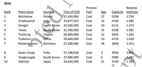 콜로라도 대학교가 전 세계 221개국 3만여 개의 화력발전소를 일제조사해 발전량과 이산화탄소 배출량을 조사했는데요, 상위 5%의 화력발전소가 전 세계 탄소배출량의 73%를 차지한다는 충격적 결과를 내놨습니다. 전 세계 석탄 소비량의 67%를 중국과 인도 단 2개국이 차지하고 있습니다. 그런데 상위 10개 탄소배출 화력발전소 보유국 상황을 보면 우리나라도 들어 있습니다.