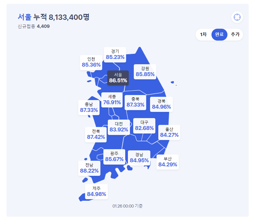 1월 26일 현재 우리나라의 1차 백신 접종율은 86.90%, 2차까지 접종 완료한 사람은 85.50%입니다. 그런데 3차 추가 접종까지 완료한 사람은 50.25%로 절반 수준입니다. 오미크론 변이를 막으려면 3차 추가 접종까지 해야 한다는 전문가들의 지적이 많습니다만, 국민 상당수가 백신 공포를 조장하는 언론 기사의 영향으로 주저하고 있는 상황입니다.