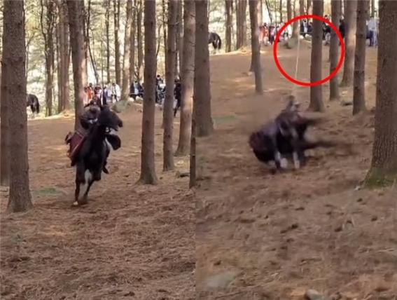 동물자유연대는 지난 1월 20일 KBS 드라마 태종 이방원 촬영 현장에서 발생한 동물학대를 규탄한다는 글과 함께 촬영 현장 영상을 공개했습니다. 해당 장면은 <태종 이방원> 7화에 나온 장면으로 주인공 이성계(김영철 분)가 말을 타고 가던 중 낙마하는 장면이라고 합니다. 동물보호단체와 시청자들은 동물학대 의혹을 제기했습니다. CG가 없던 시절처럼 말의 발목을 낚싯줄로 휘감아 채는 구시대적 방법으로 연출한 것 아니냐는 의문이 들었기 때문입니다. 공개된 영상을 보면 그 의구심이 사실이었음을 확인할 수 있습니다.