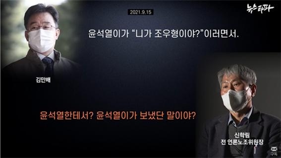 《뉴스타파》는 대장동 사건의 핵심 인물인 김만배가 검찰 수사 직전인 지난해 9월 지인과 나눈 대화가 담긴 녹취록 파일을 공개했습니다. 여기에는 김만배가 대장동 사업을 진행해온 과정과 최근 논란이 되는 2011년 부산저축은행 수사 당시 대장동 대출 관련자에 대한 검찰의 봐주기 수사를 당시 대검 과장이었던 윤석열을 통했다는 내용이 들어 있습니다.