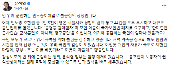 또한 윤석열은 노동조합을 '미래 약탈 세력'이라는 말로 폄훼하고 시민단체를 '권력을 지지하는 부패 카르텔'이라고 규정해 사람들을 아연실색하게 했습니다. 급기야 언론노조를 향해 강성노조의 전위대, 못된 짓의 첨병 중의 첨병이라고 욕하기도 했습니다. 결국 이 사람이 좋아하는 건 뭔가 싶을 정도로 윤석열은 모든 것을 혐오하기 바빴고 또 그런 마음을 숨길 생각이 아예 없었습니다.