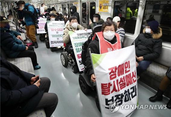 지난 2월 한 게시물이 인터넷 커뮤니티와 SNS에서 큰 논란을 일으켰습니다. 장애인의 이동권을 보장하라며 석 달째 지하철 시위를 이어가던 전국장애인차별철폐연대는 지난 2월 9일 지하철 5호선에서 시위를 했습니다. 이로 인해 열차가 지연되자 승객 중 한 명이 열차 지연 때문에 할머니 임종을 지키러 가야 하는데 어려움을 호소하자 시위 중이던 장애인이 '그럼 버스 타고 가세요'라고 답했다는 것이 문제였습니다.