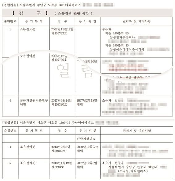한동훈이 살고 있는 강남 타워팰리스는 최초 소유자가 삼성전자와 삼성SDI입니다. 한동훈은 알려진 대로 2017년 삼성전자 이재용을 뇌물 등의 혐의로 구속기소 한 수사 당사자입니다. 그런데 그는 대검찰청 반부패 강력부장이던 시절 자녀 명의로 삼성전자 주식을 가지고 있었습니다. 그런 그가 살고 있는 집의 최초 소유자가 삼성 그룹 계열사였다는 사실, 과연 어떻게 받아들여야 할까요? 윤석열이 대선 내내 강조하던 '공정'이 의미가 있으려면 이런 의심을 살 상황은 만들면 안 되는 것 아닐까요?