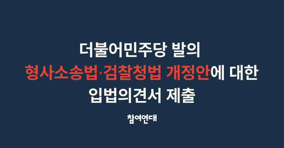 지난 4월 20일 참여연대는 더불어민주당이 발의한 검찰정법 및 형사소송법 개정안에 대해 입법의견서를 제출했습니다. 참여연대는 수사권 조정 이후 꾸준히 '수사-기소' 조직의 분리를 개혁의 방향으로 제시해왔습니다. 그런데 더불어민주당이 발의한 개정안은 "검찰권에서 수사 권한만을 분리하는 기능 분리 관점에서, 사법경찰관을 수사의 주체로 하고, 검사는 수사권 없이 기소권만을 행사하는 기관으로 상정하고" 있다며 "검찰로부터 수사권한을 제거하면서도 사법경찰관에 집중된 권한을 통제할 장치들을 마련하지 않고, 이미 있는 적법성/적정성 통제 장치마저 약화시켜 이대로 처리될 경우 비대해진 경찰권한의 오남용으로 인한 문제가 예상"된다고 문제를 제기합니다. 이 때문에 참여연대는 "권한이 강화되는 경찰수사에 대해 비례적으로 강력한 견제수단을 도입하여 견제와 균형이 유지되도록 하기 위해 △검사-사법경찰관-공수처 등 수사·기소 기관 사이의 협력 프로그램을 통한 협력·공조 체제의 강화, △강제수사에서 영장청구권자인 검사의 심사를 통해서, 그리고 기소를 위한 독자적인 조사권능을 통해서 경찰수사의 적법성/적정성을 통제하는 검사의 역할 강화, △더욱 비대해지는 경찰에 대해 권한의 분리·분산을 통한 견제 등의 보완이 필요하고, △법 개정 이후 세부적 시행을 위한 입법 및 이행 로드맵과 조직법적 보완방안이 제시되어야 한다는 점"을 입법의견서에 담았습니다.