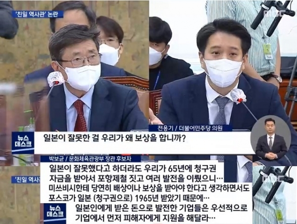 지난 4월 10일 문화체육관광부 장관 후보자로 지명된 박보균은 과거 친일 행보로 구설에 올랐습니다. 2014년 한림대에서 열린 제1차 세계대전 100주년 세미나 당시 《중앙일보》 대기자로서 세계대전의 촉발 과정을 설명하다 세계에 식민지를 두고 지배해봤던 나라들은 우리나라와 달리 법에 예외를 두지 않는다라고 발언했습니다.