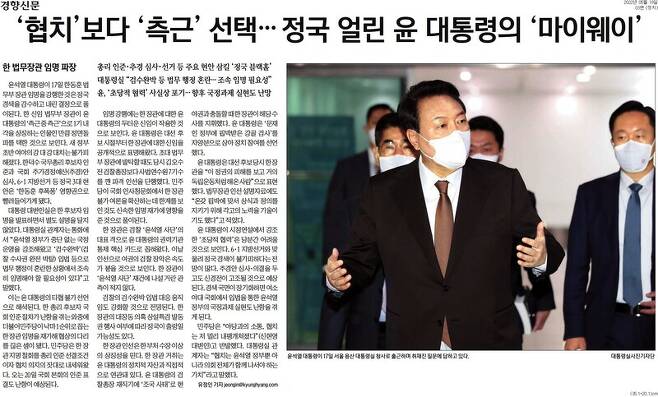 주요 언론은 1면 머리기사로 윤석열 대통령이 한동훈 후보자를 법무부 장관에 임명한 사실을 보도했습니다. 보수 언론에서조차 윤 대통령이 협치와 의회주의를 강조한 다음 날, 야당의 반대를 무릅쓰고 임명을 강행했다고 전하면서 "한덕수 총리 인준안이 부결돼도 할 말 없다"는 평가를 보이기도 했습니다. 《국민일보》는 "더불어민주당은 한 장관이 조국 법무부 장관 일가에 대한 수사 지위 경력과 장녀의 '스펙 쌓기' 의혹 등을 이유로 한 장관의 임명을 강하게 반대해왔다"면서 "정국은 급격히 얼어붙고 한덕수 국무총리 후보자에 대한 국회 인준에도 먹구름이 끼게 됐다"라고 전했습니다.