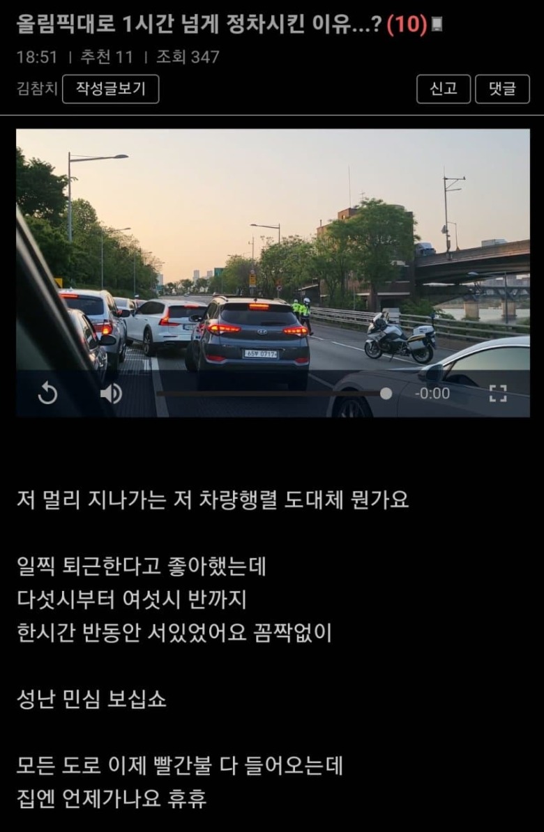서울 강변북로와 올림픽대로 등은 안 그래도 출퇴근 시간에 막히는 길입니다. 그런데 윤석열 당선인이 굳이 출퇴근을 하겠다고 하여 1시간 반씩 막아두고 교통통제를 하는 상황이 실제로 펼쳐지고 말았습니다. 누구도 원한 적 없는 청와대를 국민에게 돌려주겠다는 이유 때문이었습니다. 아래 영상에서 운전자들의 성난 경적과 성난 목소리가 들리시나요? 취임식인 오늘부터 짧게는 한 달간 매일 벌어질 일입니다.