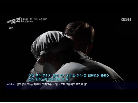 이런 상황도 기가 막힌데 SPC 측은 노조 파괴 활동의 일환으로 노노갈등을 부추기고 있었습니다. 복수노조제도를 악용한 겁니다. 단식투쟁을 한 민주노총은 단체교섭권이 없는 소수 노조였습니다. SPC의 교섭 대표노조는 한국노총 소속 노조인데요. KBS <시사직격> 보도에 의하면 한국노총은 어용노조로서 SPC 사측과 결탁해 스파이 활동까지 한 것으로 드러났습니다.