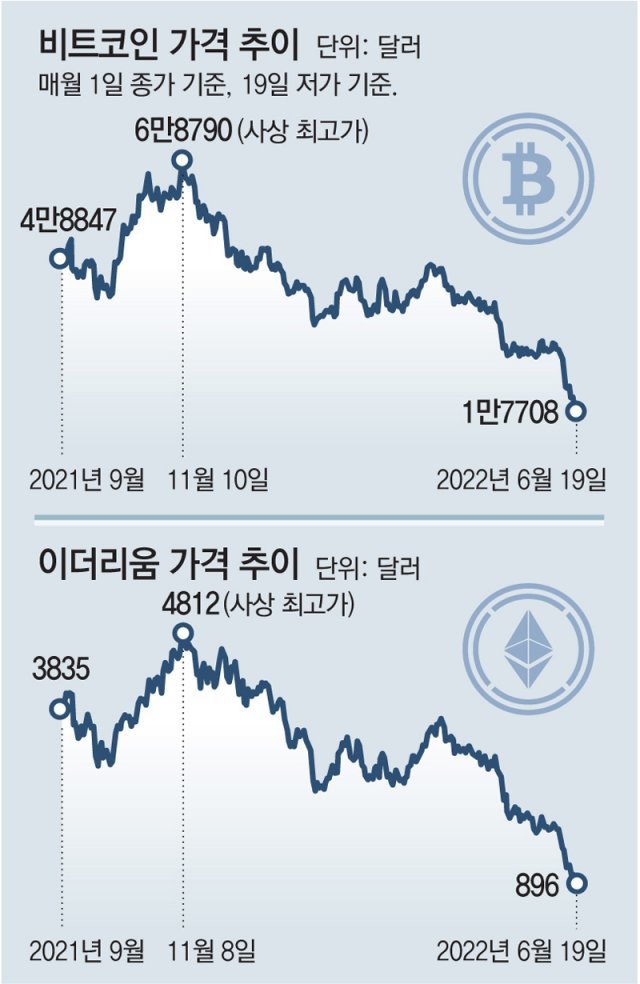일부 계층이 환상에 사로잡혔던 비트코인 역시 2만 달러는커녕 1만 달러 중후반대까지 폭락했습니다. 비트코인이 몰락하는 상황에서 애초 비트코인 열풍을 조장한 전문가들과 기레기들이 책임을 면하긴 어려워 보입니다.