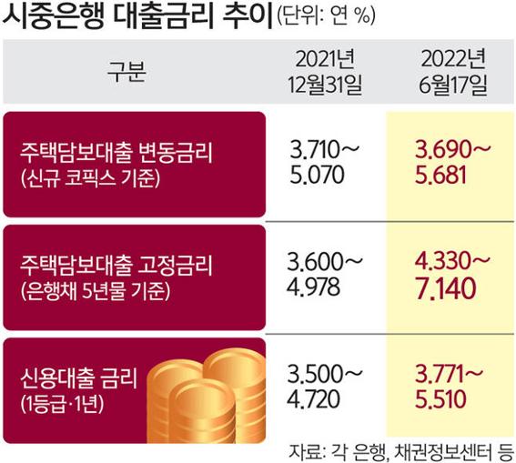 대체적으로 미국 금리 추세를 따라가는 우리나라 특성상 금리가 무시무시하게 오르고 있습니다. 이런 속도면 올 연말에는 8%가 넘는 대출 금리가 나올 것이라는 전망입니다. 한국은행이 연말까지 기준금리를 적어도 1% 더 올릴 것으로 예상됩니다. 가계부채 규모가 사상 최대인 상황에서 금리가 저렇게 오르면 취약계층부터 연쇄적으로 무너질 가능성이 있습니다.