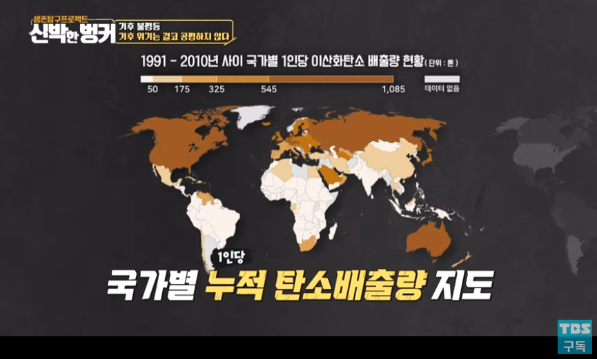 '국가별 누적 탄소배출량을 나타낸 지도'와 '기후변화로 인한 피해국 지도'를 대비하여 살펴보면 우리가 왜 기후정의에 대한 시각을 갖추어야 하는지 여실히 드러납니다. 기후위기와 관련하여 지구적인 불평등은 분명히 존재합니다. 지구적인 관점에서 시선을 돌려 우리나라 내부의 문제만 들여다봐도 구조적인 불평등이 극심하다는 사실을 확인할 수 있습니다.