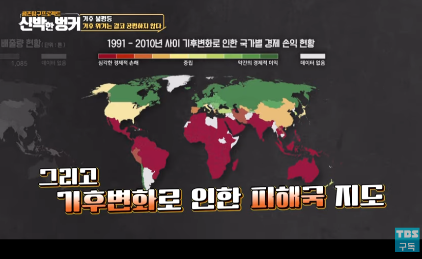 '국가별 누적 탄소배출량을 나타낸 지도'와 '기후변화로 인한 피해국 지도'를 대비하여 살펴보면 우리가 왜 기후정의에 대한 시각을 갖추어야 하는지 여실히 드러납니다. 기후위기와 관련하여 지구적인 불평등은 분명히 존재합니다. 지구적인 관점에서 시선을 돌려 우리나라 내부의 문제만 들여다봐도 구조적인 불평등이 극심하다는 사실을 확인할 수 있습니다.