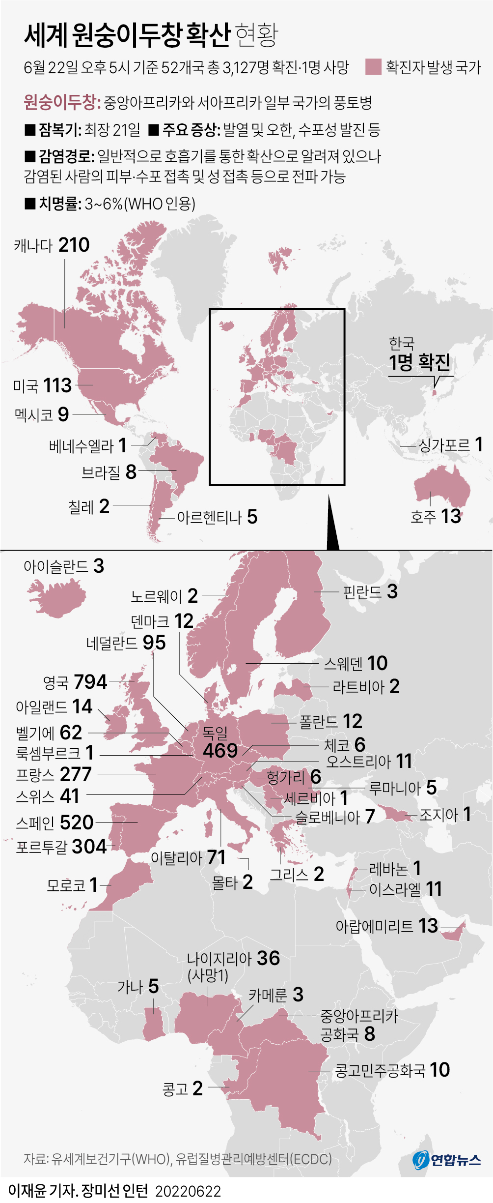 코로나19에서 벗어나 일상을 회복하는 모습입니다만, 갑자기 우리를 불안하게 하는 감염병이 또 등장했습니다. 원숭이두창(Monkeypox)인데요, 44개국에서 3500여 명이 확진되었습니다. 이례적인 확산세에 WHO도 경계감을 나타내고 있습니다.