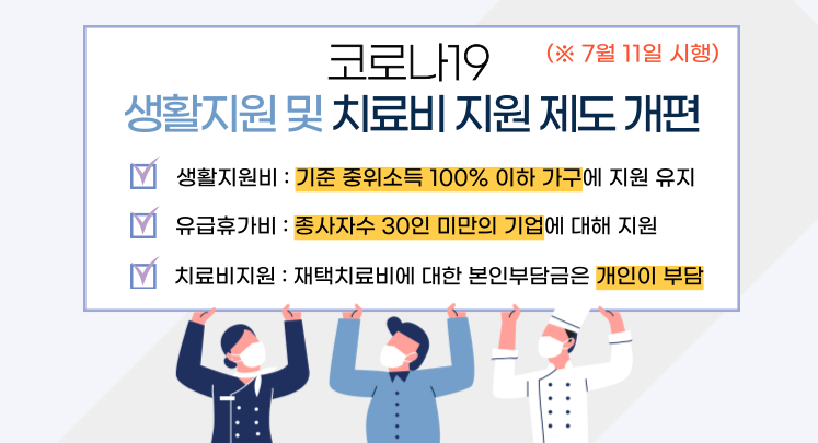 객관적인 상황은 이처럼 좋지 않은데 윤석열 정부가 대선 전부터 내세우던 이른바 '과학방역'에 대해서는 우려하는 마음이 먼저 듭니다. 코로나19 재유행이 우려되는 이때 정부가 지원을 줄이기 시작했기 때문입니다. 그동안 코로나19에 감염돼 입원, 격리한 사람은 소득기준에 관계없이 10~15만 원의 생활지원금을 받았지만 이제는 중위소득 100% 이하 가구에만 지원하는 것으로 축소했습니다. 모든 중소기업에 정부가 지원하던 하루 최대 45,000원, 최장 5일의 유급휴가비도 종사자 30명 미만 사업장으로 축소됩니다.