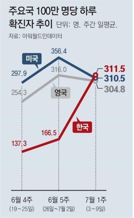 독일, 영국, 프랑스 등 유럽에서도 BA.5 변이 바이러스의 빠른 확산으로 코로나가 재유행하고 있습니다. 미국 역시 하루 평균 13만 명 넘는 환자가 쏟아지고 있습니다. 미국 정부는 공중보건 비상사태를 오늘 10월까지로 재연장했습니다. 인도에서는 오미크론의 하위 변위인 BA.2.75가 유행하고 있습니다. 일본은 지난 16일 신규 확진자가 110,675명에 이르러 역대 최대치를 기록하기도 했습니다. 그런데 이 기간 인구 100만 명당 확진자 급증세는 우리나라가 미국이나 영국보다 높습니다. 과연 윤석열 정부가 '과학방역'으로 이 위기를 제대로 막을 수 있을까요?