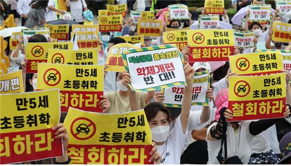 초등학교 입학 연령을 현행 만 6세에서 만 5세로 낮추는 학제 개편안은 결국 폐지됐습니다. 예정된 수순이었다고 해도 과언이 아니죠. 국민 대다수가 반대하는 정책이 힘을 얻을 수는 없으니까요. 지난 7월 29일 박순애 교육부 장관이 대통령 업무보고에서 폭탄 발언을 하듯 만 5세 취학안을 꺼내자 대한민국은 그야말로 폭풍 같은 시간을 보내야 했습니다. 교육부 발표는 내부 논의가 상당히 진행되었기 때문인지 구체적인 방안을 제시하고 있었습니다. 2025년부터 4년간 25%씩 앞당긴다는 것이었죠. 하지만 이런 깜짝쇼에 아이를 키우는 학부모 대부분이 분기탱천했습니다.