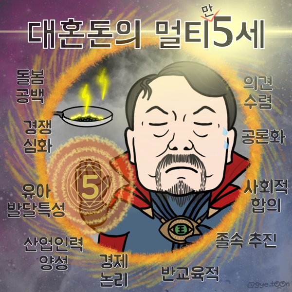 무리한 정책을 펼치다보니 어떻게든 좋은 그림 좀 연출해보겠다고 마련한 학부모단체와의 간담회에서 촌극이 벌어졌습니다. 간담회 막바지에 "제가 업무보고에서 이런 화두를 던지지 않았더라면 언제 이렇게 학부모들의 가슴 아픈 사연을 들을 수 있겠느냐"는 어이없는 소리를 해 매를 벌었죠. 간담회에 참석한 한 단체 대표는 "지금 병 주고 약 주는 소리냐. 이미 팩트 체크도 없이 정책들만 던져놓고 이제 와서 간담회에서 할 소리냐"라고 반발했습니다. 이에 대해 인터넷상에서는 "이완용 : 내가 매국이라는 이런 화두를 던지지 않았더라면 언제 이렇게 민초들의 가슴 아픈 독립 만세를 들을 수 있겠느냐"라며 비웃는 패러디가 넘쳤습니다.