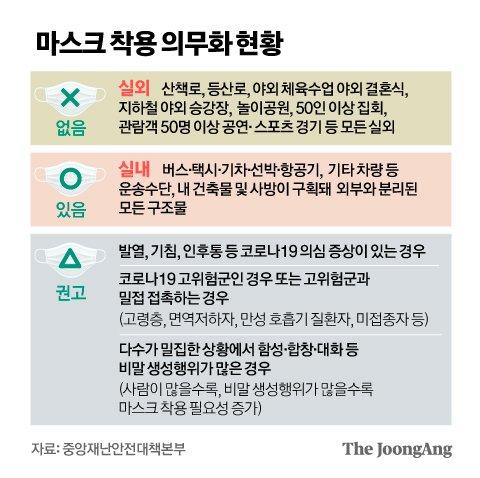 1년 5개월 만에 실외 마스크 착용 의무가 해제되었습니다. 가을 프로야구장, 야외 공연장, 대규모 집회 등지에서 마스크를 쓰지 않아도 됩니다. 산책로, 등산로, 운동장, 야외 결혼식장, 지하철 야외 승차장, 놀이공원 등지에서도 마스크 없이 사람들과 어울리고 활보할 수 있게 되었습니다. 방역당국은 이번 완화 조치는 과태료가 부과되는 의무조치만 해제된 것이라고 단서를 달았습니다. 실외에서 마스크 착용이 불필요하다는 걸 의미하지 않으며 개인의 자율적 실천은 여전히 필요하다는 의미입니다.