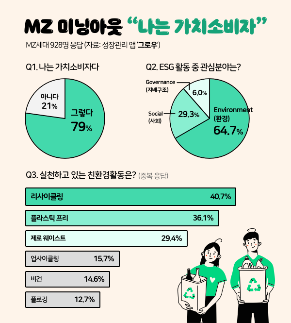 이런 적극적 불매운동은 MZ세대의 특징이라는 분석도 나옵니다. 성장관리 앱 그로우가 MZ세대 928명을 대상으로 진행한 '가치소비'에 대한 설문조사 결과를 보면 10명 중 8명이 자신을 가치소비자라고 생각한다고 답했습니다. 기업의 ESG 활동과 관련된 질문에서도 '제품/브랜드 선택 시 ESG 영향을 받는다'(5점 척도)가 평균 3.5점을 기록했습니다. 응답자의 78.2%는 친환경 활동을 하고 있다고 답했는데요, '리사이클링'(40.7%), '플라스틱 프리'(36.1%), '제로 웨이스트'(29.4%), '업사이클링'(15.7%), '비건'(14.6%), '플로깅'(12.7%)을 실천하고 있다고 답했습니다. 2개 이상을 실천하고 있는 응답자가 45%를 차지해, MZ세대가 친환경 활동에 적극적인 모습을 보인다는 사실을 알 수 있었습니다. 이처럼 MZ세대는 기업의 윤리성을 따지는 것은 물론 자신의 삶에서 적용 가능한 실천을 능동적으로 합니다. SNS 환경에 익숙한 이들은 강력한 정보 생산력을 바탕으로 온라인을 통해 끊임없이 정보를 주고받으며 SPC 제품 불매운동의 주축이 되고 있습니다.