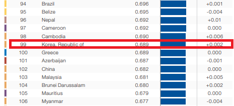 WEF는 2006년부터 세계 각국의 성평등 상황을 교육·건강·경제·정치 등 부문별 여성과 남성 격차를 지수로 환산해 순위를 발표해왔습니다. 국가 내 여성과 남성 간의 격차만 보고 평가하는데요, 한국의 성 격차 지수는 0.689(1에 가까울수록 평등)로 146개국 중 99위로 지난해 발표와 비교해 0.002점 상승했고 순위도 3계단 도약했으나 여전히 하위권입니다. 우리나라에 구조적 성차별이 없다는 윤석열과 국민의힘의 주장과 대치되는 상황이죠. 여가부를 폐지하면 여권이 더 신장된다는 생각은 대체 누구 머리에서 나온 건지 모르겠군요.