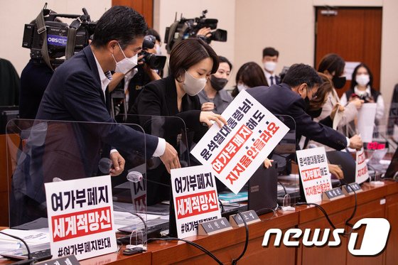 지난 10월 25일 더불어민주당 의원들은 서울 여의도 국회에서 열린 여성가족위원회의 여성가족부 등 소관기관에 대한 국정감사에서 여가부 폐지에 반대하는 손팻말을 내걸었습니다. 이날 더불어민주당 의원들은 여가부 폐지에 반대하는 손팻말을 내걸고 김현숙 장관의 퇴장을 요구했고, 국민의힘 의원들이 이에 반발하며 국정감사가 시작되지도 못한 채 감사가 중지되기도 했죠. 국민을 갈라치기해 이익을 취하려는 윤석열 정부와 국민의힘이 전면 투쟁을 부르고 있습니다. 세계적 망신 자초하는 이들의 만행을 묵과해선 안 될 일입니다.