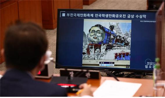매년 열리는 부천국제만화축제는 수많은 매체에서 콘텐츠의 보고로 각광받는 만화 중에서 특출 난 작품을 뽑는 유서 깊은 축제입니다. 이번에 열린 전국학생만화공모전 부문이 23회를 맞이했다는 사실만 봐도 이를 잘 알 수 있죠. 이 축제는 문체부와 경기도 그리고 축제가 열리는 부천시가 건립한 한국만화영상진흥원이 주축이 되어 개최합니다. 이번에 윤석열 정부가 문제 삼은 <윤석열차>는 전국학생만화공모전 카툰 부문 금상 수상작입니다. 달려오는 열차에 놀라 달아나는 사람들과 이에 아랑곳없이 김건희와 칼을 든 검사들을 태운 채 폭주하는 기차를 윤석열 대통령의 얼굴로 표현하여 정치판을 풍자했습니다. 이 정도 풍자는 자유민주주의 국가라면 당연히 보장되어야 할 표현의 자유 영역에 속하죠. 이 공모전에 정치를 풍자한 카툰이 출품된 것이 처음도 아니고, 수상 역시 처음이 아닙니다. 그런데 윤석열 정부의 문체부는 고등학생의 작품에 공식적인 대응 방침을 밝혀 논란을 자초했습니다. 부천국제만화축제의 후원 중 하나인 문체부는 이 작품의 금상 수상 직후인 지난 4일 해당 공모전의 심사 기준과 선정 과정을 엄정하게 살펴보고 관련 조치를 신속하게 취하겠다며 강경 대응 방침을 밝혔죠.