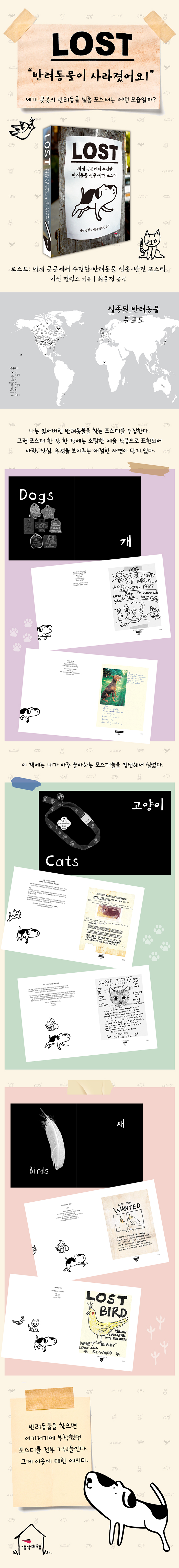 일러스트레이터인 이언 필립스는 세계 곳곳에서 잃어버렸거나 발견했다는 반려동물 포스터를 10년 넘게 수집했습니다. 그 가운데 눈에 띄는 포스터―기발하거나 재치 있는 것, 유머가 돋보이는 것, 슬픔이나 애절함이 묻어나는 것, 보상금을 내건 것, 순전히 괴상한 것 등―를 엄선해 책으로 엮었습니다.