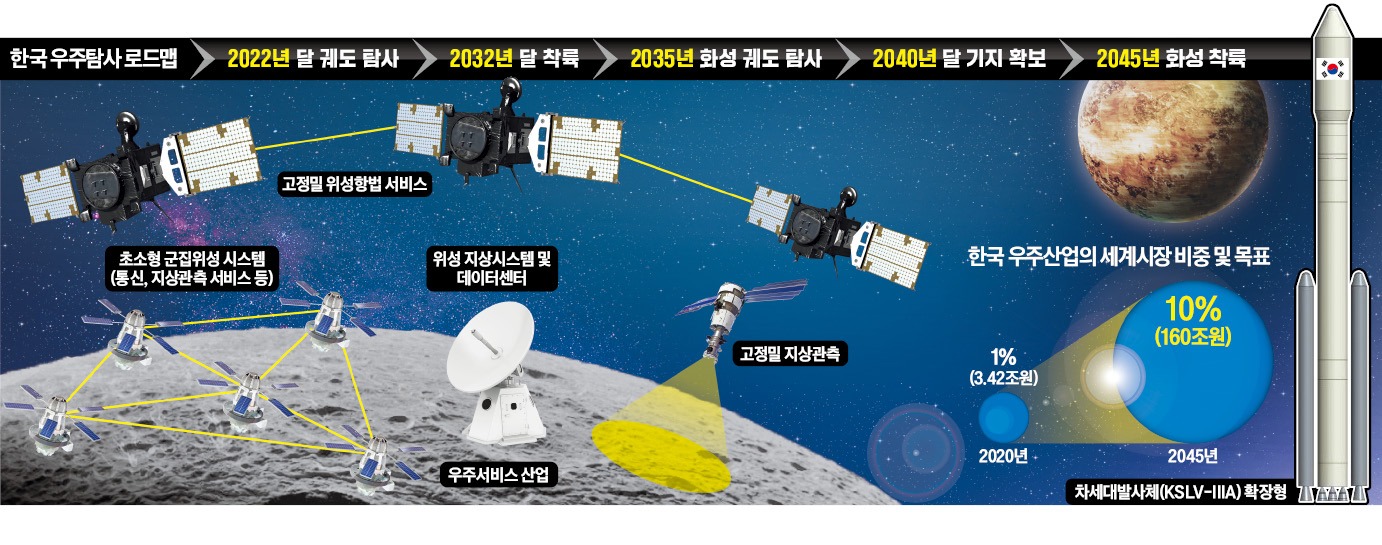 항우연이 소란스러운 가운데 윤석열 정부는 지난 12월 21일 처음으로 국가우주위원회를 열었습니다. 2045년 우주경제 강국 실현을 목표로 제4차 우주개발진흥기본계획안을 내놨습니다. 2032년에 달 착륙을 하고 2045년에 화성 착륙 성공을 목표로 무인탐사를 위한 독자 능력을 확보하겠다는 방침입니다. 또 2040년대 무인수송 능력을 갖추고 2045년까지 유인수송 능력을 확보해 뉴스페이스 시대에 진입하겠다는 계획입니다. 나아가 우주항공청 설립이나 국가우주위원회 수장을 현재 국무총리에서 대통령으로 격상하는 방안 등도 추진할 계획이라고 합니다.
