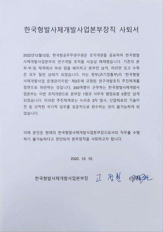 하지만 항우연 내부 구성원들 중에는 다르게 보는 이들도 있습니다. 우선 과기부에서 정한 지침까지 어겨가며 조직 개편을 강행하는 게 사실이기 때문이죠. 사퇴의 뜻을 밝힌 고 본부장 외 여러 인사도 이런 문제점을 지적했습니다. 과기부에서는 내년 6월까지 한국형발사체 연구개발조직을 유지해야 한다는 '한국형발사체개발사업 운영관리지침'을 정한 바 있습니다. 그런데 이번 조직 개편은 이를 정면으로 무시한 처사입니다.