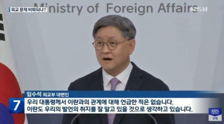 이란은 윤석열 대통령의 발언을 '비외교적'이라고 비판하며 한국 정부의 공식 입장을 요구했습니다. 지난 16일(현지시각) 이란 국영통신 IRNA에 따르면, 나세르 카나디 이란 외무부 대변인은 이날 윤 대통령의 최근 간섭적인 발언을 살펴보고 있다고 밝혔습니다. 아울러 카나니 대변인은 "윤 대통령의 발언은 이란과 UAE를 포함한 페르시안‧걸프만 국가 간의 역사적이고 우호적인 관계에 대해 완전히 무지하다는 것을 보여준다"면서 "또 긍정적인 발전이 빠르게 진행되고 있다는 점에 대한 것도 마찬가지"라고 지적했습니다. 우리 외교부는 어떤 입장일까요? 임수석 외교부 대변인은 "우리 대통령께서 이란과의 관계에 대해 언급한 적은 없습니다. 이란도 우리의 발언의 취지를 잘 알고 있을 것으로 생각하고 있습니다"라고 해명했습니다. 이게 대한민국 외교부의 수준입니다. 지나가는 개가 웃을 일이네요. 윤석열 대통령이 과거 미국 순방 중 했던 욕설 파문("국회에서 이XX들이 승인 안 해주면 바이든은 쪽팔려서 어떡하나?")을 두고, 대통령실과 외교부가 '바이든'이 아니라 '날리면'이라고 억지를 부리더니, 이제는 윤석열 대통령이 한 말이 아예 없다는 식으로 해명하는군요. 이란과의 관계에 대해 언급한 적이 없다고 하면서 이란이 발언의 취지를 잘 알고 있을 것이라고 생각한다니, 대체 이게 말이 되는 소린가요?