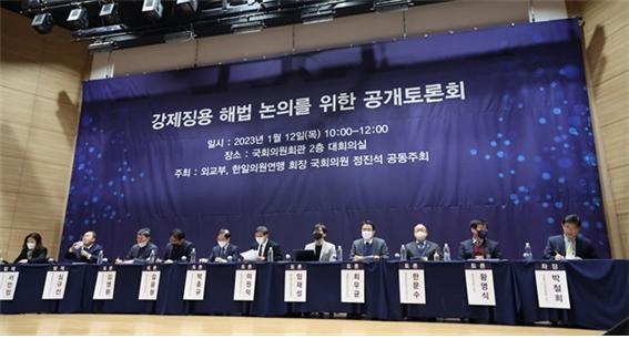 '제 버릇 개 못 준다'는 속담이 생각나는 새해 하루하루입니다. 지난 1월 12일 외교부와 한일의원연맹 회장인 정진석 국민의힘 의원이 공동으로 개최한 '강제징용 해법 논의를 위한 공개 토론회'를 두고 하는 소립니다. 그동안 루머처럼 돌던 윤석열 정부의 강제징용 해법이 공개석상에 드러난 자리였습니다. 그런데 이건 박근혜 정부 당시 굴욕적인 위안부 합의를 빼다 박은 꼴이었습니다.
